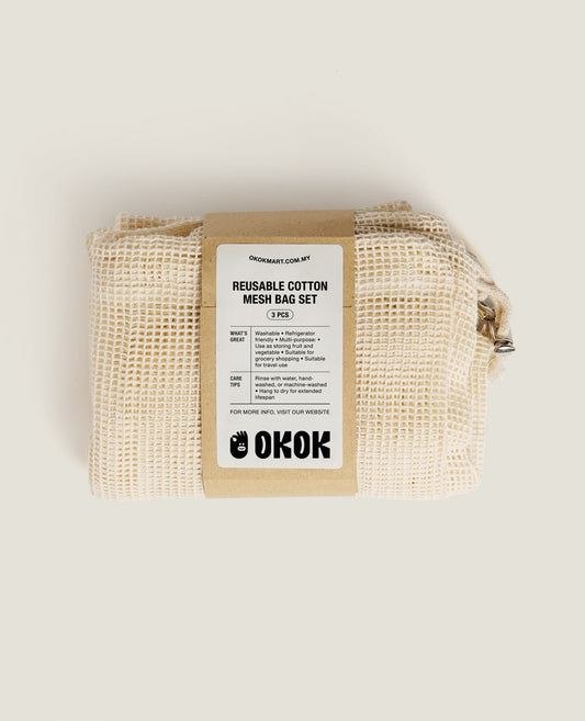 Reusable Cotton Mesh Bag Set 3 Pcs