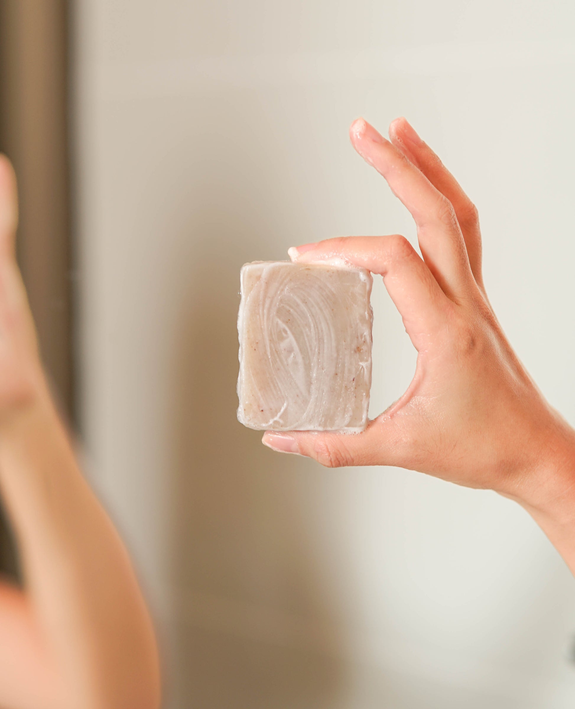 1. Simply wet the soap, lather it on your hands or on a soap net/loofah